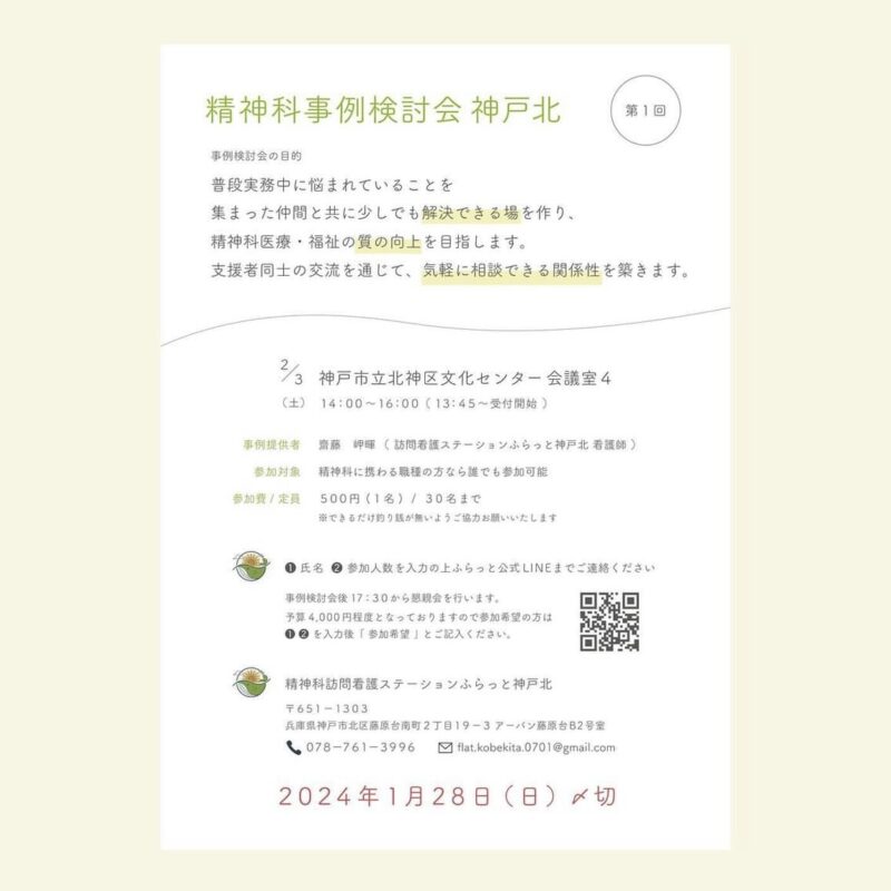 📚ふらっと神戸北主催 精神科事例検討会